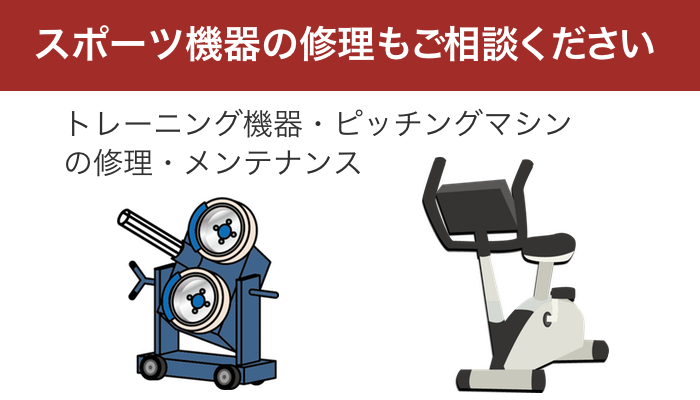 トレーニング器具やピッチングマシンの修理メンテナンス承ります。
